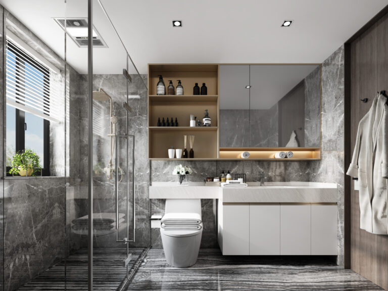 Moisture-resistant cabinets designed for bathroom environments. Features waterproof materials, anti-fog mirrors, and clever storage for toiletries.